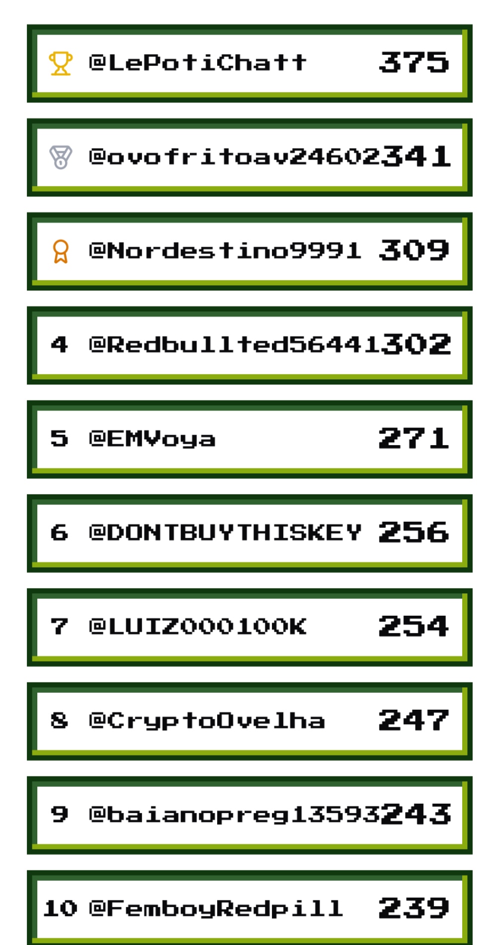 Top 10 Winners leaderboard π