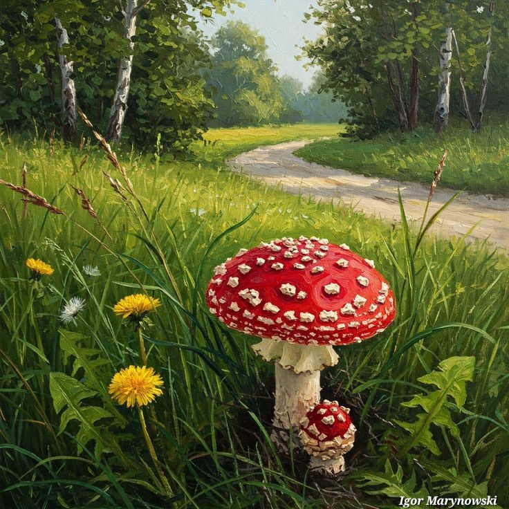 Two mushrooms grow,