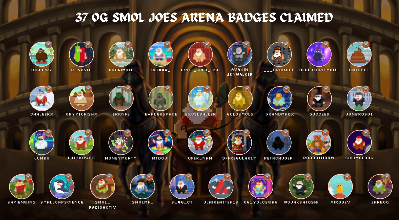 The Smol Joes badge is the rarest and most expensive badge to obtain in the Arena. These are truly the Avalanche OGs and whales in the community. Much respect to everyone who got one. 🫡